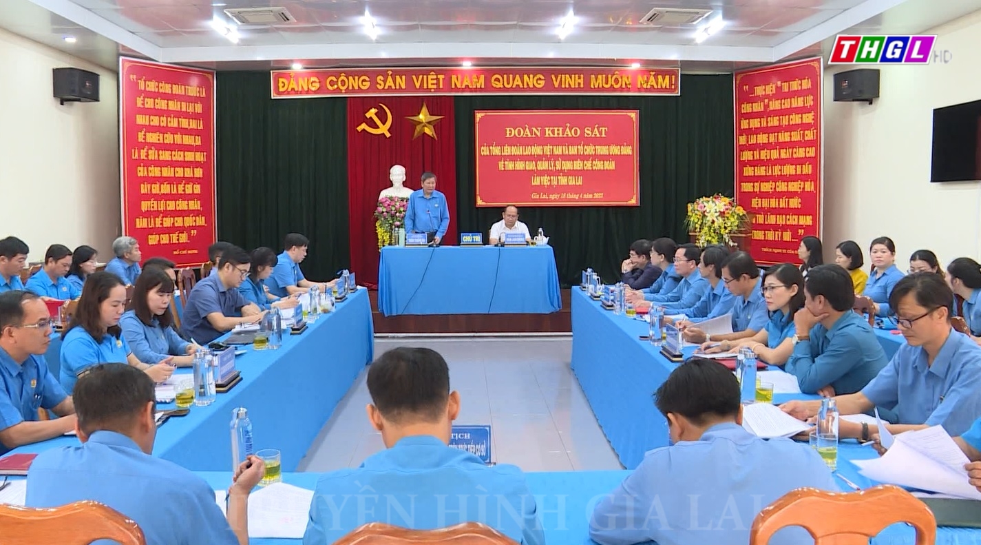 Sáng ngày 18/4, Đoàn khảo sát của Tổng Liên đoàn Lao động Việt Nam (LĐVN) và Ban Tổ chức Trung ương do đồng chí Trần Thanh Hải- Phó Chủ tịch Thường trực, Tổng Liên đoàn LĐVN làm Trưởng đoàn đã làm việc về tình hình giao, quản lý, sử dụng biên chế công đoàn tại tỉnh Gia Lai. Làm việc với Đoàn khảo sát, về phía tỉnh Gia Lai có các đồng chí: Rah Lan Chung, Phó Bí thư Tỉnh uỷ; Huỳnh Quang Thái- Uỷ viên Ban Thường vụ Tỉnh uỷ, Trưởng Ban Tổ chức Tỉnh uỷ; Trần Lệ Nhung, Tỉnh uỷ viên, Chủ tịch Liên đoàn Lao động (LĐLĐ) tỉnh, cùng các đồng chí trong Ban Thường vụ LĐLĐ tỉnh và chủ tịch 22 công đoàn cấp trên trực tiếp cơ sở trong toàn tỉnh.