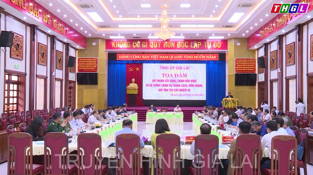 Sáng nay (20/10), tại Hội trường 2/9, Ban Thường vụ Tỉnh ủy Gia Lai đã tổ chức Tọa đàm với chủ đề: Đẩy mạnh xây dựng, chỉnh đốn Đảng và hệ thống chính trị trong sạch, vững mạnh, đáp ứng yêu cầu nhiệm vụ. Các đồng chí: Hồ Văn Niên – Ủy viên Ban Chấp hành Trung ương Đảng, Bí thư Tỉnh ủy, Chủ tịch HĐND tỉnh; Trương Hải Long – Phó Bí thư, Chủ tịch UBND tỉnh; Rah Lan Chung – Phó Bí thư Tỉnh ủy, Trưởng Ban Nội chính Tỉnh ủy chủ trì buổi Tọa đàm. Tham dự Tọa đàm có các đồng chí trong Ban Thường vụ Tỉnh ủy, Ban Chấp hành Đảng bộ tỉnh; lãnh đạo các cơ quan, ban, ngành, đoàn thể tỉnh và một số tổ chức cơ sở Đảng tiêu biểu ở các địa phương trong tỉnh.