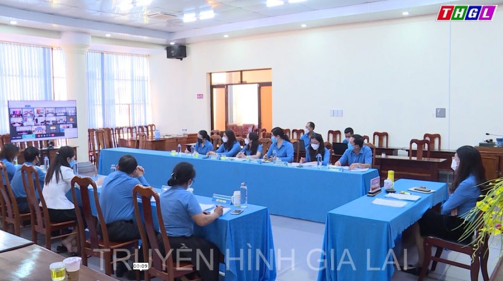 Sáng 30/9, Tổng LĐLĐ Việt Nam đã tổ chức Hội nghị trực tuyến toàn quốc triển khai Kế hoạch phát triển đoàn viên thành lập công đoàn cơ sở đến năm 2023 và công tác tuyên giáo 9 tháng đầu năm, triển khai các nhiệm vụ 03 tháng cuối năm 2021, định hướng nhiệm vụ năm 2022. Hội nghị được kết nối trực tuyến với LĐLĐ các tỉnh, thành phố trực thuộc Trung ương; công đoàn ngành Trung ương và tương đương. Tại điểm cầu tỉnh Gia Lai, dự hội nghị có đồng chí Trần Lệ Nhung, Tỉnh ủy viên, Chủ tịch LĐLĐ tỉnh, các đồng chí trong Ban Thường vụ và các ban chuyên môn LĐLĐ tỉnh, cùng 77 cán bộ chuyên trách công đoàn ở 22 điểm cầu LĐLĐ huyện, thị xã, thành phố, các công đoàn ngành và tương đương.