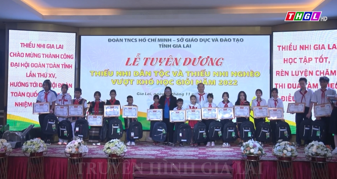 Tại lễ tuyên dương, các đồng chí lãnh đạo tỉnh đã tặng Bằng khen của Đoàn TNCS Hồ Chí Minh tỉnh Gia Lai và quà cho 81 em thiếu nhi dân tộc thiểu số và thiếu nhi nghèo vượt khó học giỏi trên địa bàn tỉnh.