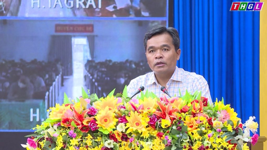 Đồng chí Hồ Văn Niên-Ủy viên BCH TW Đảng, Bí thư Tỉnh ủy, Chủ tịch HĐND tỉnh chủ trì hội nghị và trực tiếp phổ biến nội dung ở điểm cầu chính tại Hội trường 2/9 TP. PLeiku.
